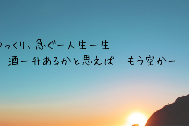 ゆっくり、急ぐ -人生一生 酒一升 あるかと思えば もう空か -