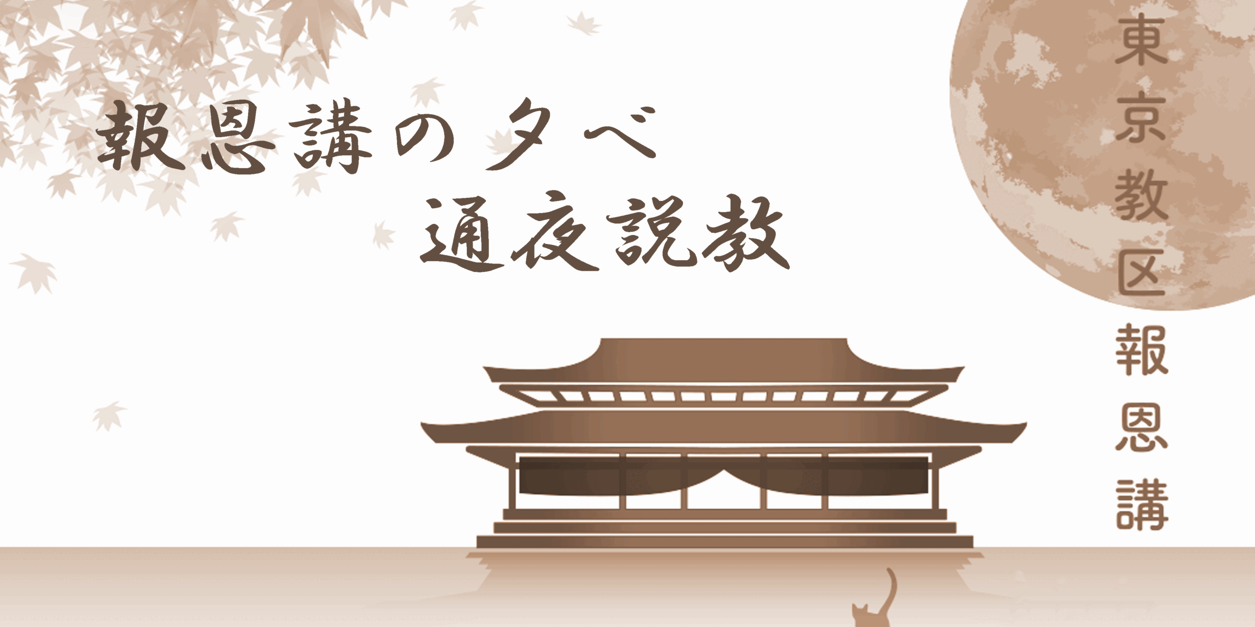 通夜説教とはその名の通り、亡き人を縁として夜通し教えをいただく機会を表現したものです。お通夜の原型はお釈迦さまの入滅後、悲しんだ弟子たちがご遺体を見守りながら7日間にわたって、生涯をかけて説かれたお釈迦さまの教えを、夜通しお互いに語り合い、聞き合ったとされる故事からきている説があります。通夜は、故人の冥福をことではなく、集まった親しい人々が亡き人を縁として、教えに出遇っていただく大切な時間です。